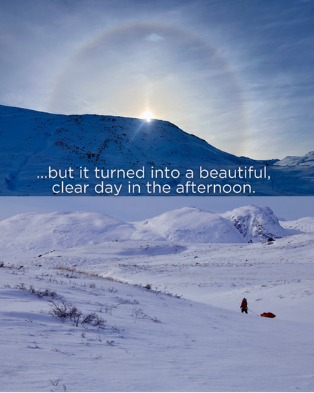 The uncharacteristically "bad" winter did provide the team with quite a nice benefit though. The Arctic Circle Trail is quite sparsely traveled in winter to begin with, but the seemingly difficult conditions of 2026 dissuaded many would-be skiers from even attempting the traverse. This led to a delightfully solitary experience for our team. For eight days they only saw three other people total!